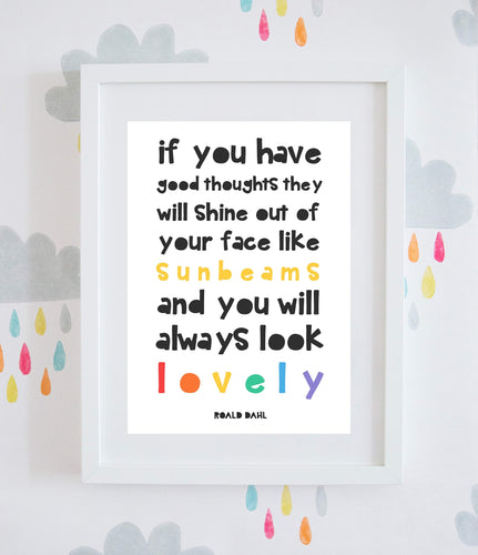 Roald Dahl ‘Good Thoughts’ Positivity Book Quote Wall Art