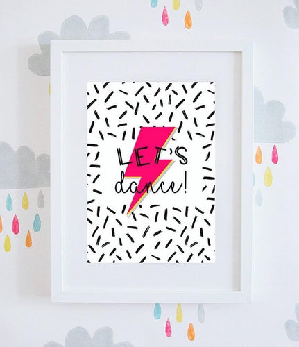 ‘Let’s Dance!’ David Bowie Quote Lightning Bolt Wall Art (Pink or Green Available)